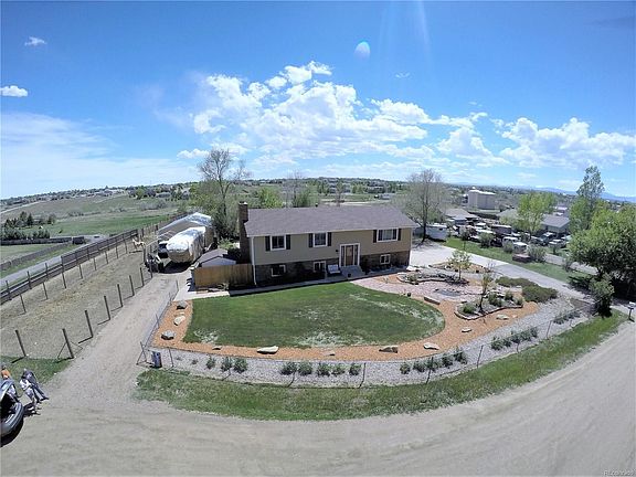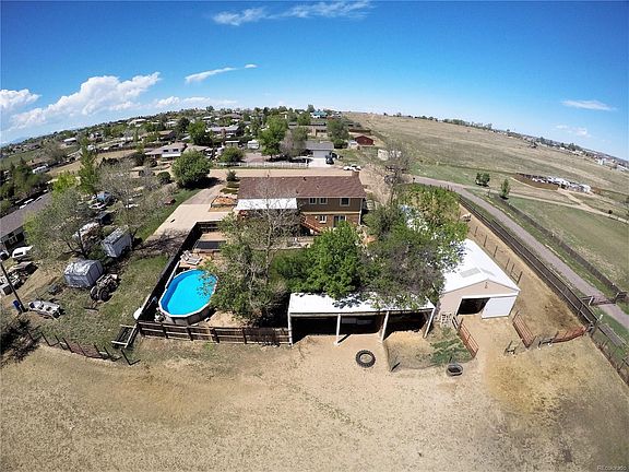 Great functioning horse property close to I-25, 470, and 85 for an easy commute to anywhere you want to go. Just a couple miles from town, you have the best of living in the country, and the convenience of being close to shopping, schools, and parks/bike paths. The longtime owners have taken meticulous care and has put the best into everything, like top of the line double pane low-e windows, insulated vinyl siding, newer roof, furnace and water heater. The open floorplan lets you enjoy your family and gatherings. some of the features include a large enclosed 2-3 stall barn w/tack room and overhead doors for easy pull through, a separate 3 stall pole barn, pool and trampoline area (fenced in for safety), covered lower patio, and upper deck with unobstructed views of the mountains, and a beautifully manicured yard w/water feature. the lower private bedroom has an outside access which could easily make a perfect separate living quarters out of the lower level.