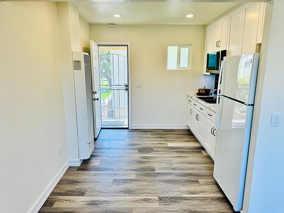 Discover modern living in this completely renovated studio located in the highly sought-after Chateau Blanc community in Fountain Valley. This beautifully updated upstairs studio boasts a brand-new kitchenette with top-of-the-line cabinets, quartz countertops, a stainless steel sink and faucet, an LG microwave, a hot plate, and even an included refrigerator. Enjoy the convenience of luxury vinyl plank flooring for easy maintenance, recessed lighting, a ceiling fan, and a portable air conditioner to keep you comfortable year-round. The bathroom has been meticulously upgraded with a new quartz countertop vanity, a new toilet, and a tiled tub in the shower with elegant heavy glass sliding doors. Residents of Chateau Blanc enjoy access to a range of amenities including a swimming pool, clubhouse, tennis court, playground, half basketball court, and lush green belts. A parking permit is also included, allowing easy access to parking across the street. Additional perks include shared laundry privileges with the main unit and utilities covered up to $250 per month. This studio is a gem and won't last long. Apply today! Only one resident allowed. No smoking in the property. Studio is above the 2 car garage accessed through the garage and up stairs via patio that separates garage and main unit. Utilities included up to $250/month. Wifi is tenants responsibility. Parking pass across the street is included, $75/month perk.