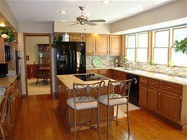 Quality abounds in this five bedroom, three and one-half bath colonial on two private wooded acres. In-law suite on first floor. Gourmet, updated kitchen with new granite countertops, ceramic and glass backsplash, pantry, sparkling solid wood oak floors, skylights and planning desk. Formal dining room with crown moulding, floor to ceiling window and chair rail. Family room with 9 ft ceilings, wet bar, custom built-in shelves, bayed window area and french doors on both sides of brick woodburning fireplace. Sun room with skylights, vaulted ceiling opens to stone paver patio for ease of entertaining. Spacious master suite with walk-in closet and enormous master bath with cathedral ceiling, updated sink and tile. Laundry room with chute. Oversized two car side entry garage with hot/cold spigots. Major upgrades include new roof 2002(complete tear off) heat pump 2002, HWT 2009 & new thermostat. Large third floor walk up attic. Loads of parking, concrete drive leads to a huge concrete pad. Matured, manicured landscaped yard with scalloped beds.