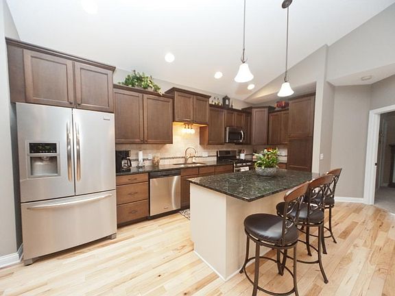 Welcome home! Must see custom rambler with open concept floor plan, gourmet kitchen, vaulted ceilings, 3 bedrooms on main level plus massive finished lower level with wet bar and fireplace situated on private wooded lot backing up to parkland. Custom paver patio and fire pit in rear of home to enjoy all the seasons. Model like condition without the wait of building!