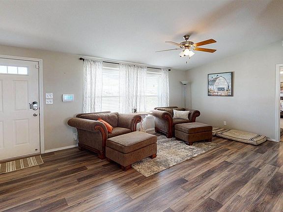 Gorgeous, very well cared for home with amazing views! This gem has an open floor plan featuring a living room & a family room. Kitchen overlooks a hay field right outside the kitchen sink giving you that farm house feel. Extra large master suite has double sinks, a garden tub & a separate shower stall. Luxury vinyl plank throughout most of the home & beautuful vinyl & carpet in the bedrooms & bathrooms. Custom stamped/covered back patio thats great for entertaining! Plenty of acreage for your animals!
