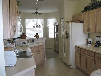 Immaculate Wakefield model with den, high ceilings, champagne color walls with almond kitchen appliances, seven ceiling fans in home, including in 9X16 Florida room with acrylic windows. Three panel sliding glass door to Florida room, beautiful kitchen with beveled counter tops, pantry, breakfast room, wood cabinets, side by side refrigerator, dishwasher, & smooth top stove. Plantation blinds, sandstone fans in master, very large walk in closet, garage has laundry tub. A must see-priced right!