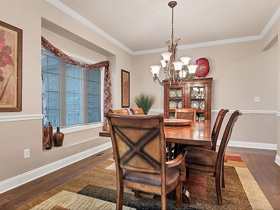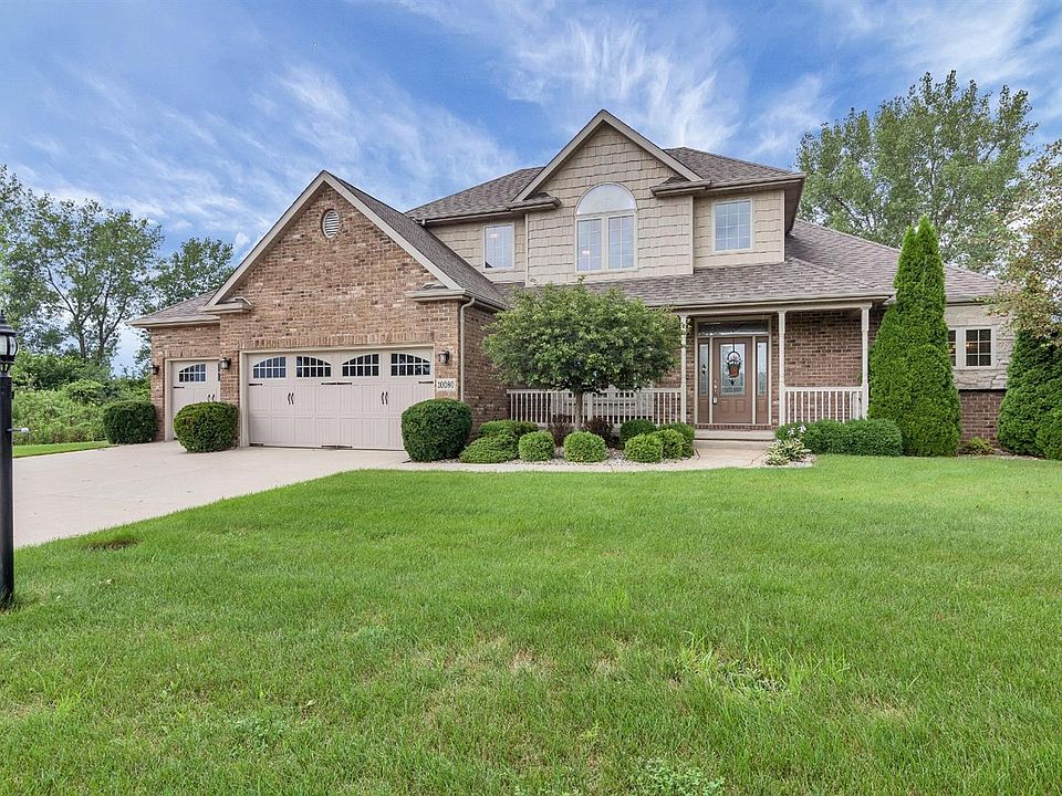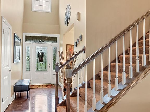 Impressive 1 1/2 story Lakefront home with walk-out finished basement. Soaring 20' ceilings in Foyer and great room, 9' throughout main level. Great room has Gas vented cultured stone FP. Opens to Kitchen, Large center Island with Vegetable sink, Granite counters, Maple cabinets with Toffee stain. Sliding door leads out to large trex deck with PVC Railings.  HW floors in DR and Kitchen and Foyer.  Master bedroom on MAIN LEVEL, tray ceilings recessed lights, closets with organizers. Master bath with double sinks, 6 ft. whirlpool tub, separated 5' shower with double seats.  Upper level has 3 additional bedrooms, one with vaulted ceilings. Basement walk-out is finished except for floor covering, does have 1/2 bath finished. 90% efficiency furnace and direct vented hot water heater. Back and front yard is nicely landscaped, beautiful view overlooking the lake.  Seller offering a 1 yr. HSA warranty. Seller is transferring hating to leave this beautiful home! MUST SEE!