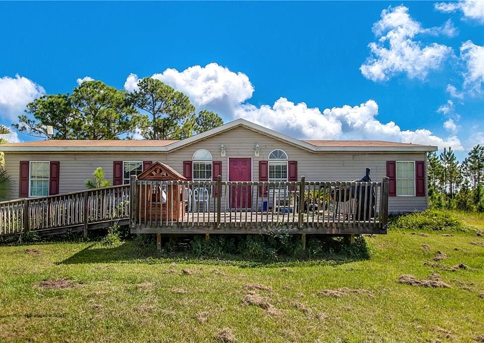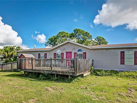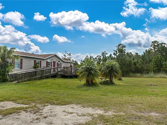 You're gonna love this large kitchen and island!! Ready to move in 3/2 Manufactured Home on 10+ ACRES, year 2000, large family room with firepace. Master bath has a great jetted garden tub and a separate shower and his and hers sinks. Huge closet also. Relax on the wooden deck. There is a mostly cleared pond in this gated community. Enjoy the boat ramp, good schools & more! This is good livin'.