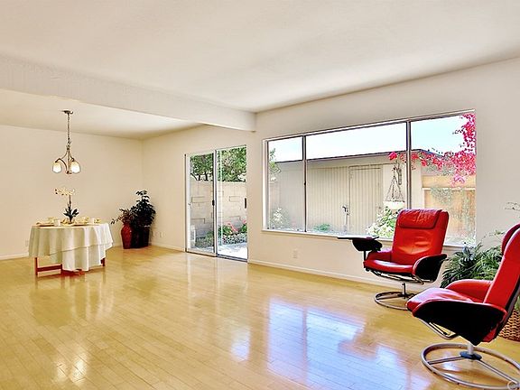 Fabulous opportunity to own a single story all electric end unit air-conditioned patio townhouse in desirable community of Tiburon South with all blue ribbon schools close to the property; close to freeways and shopping within walking distance. With all copper plumbing, this property has maple engineered hardwood floors throughout with open floor plan including kitchen, dining and living room areas right next to sliding glass door leading out to private beautiful patio between townhome and garage. Kitchen boasts of granite counters, G.E. Profile side by side refrigerator, smooth top burners on top of electric oven, microwave and stainless steel double sinks with efficient instant hot water systems in kitchen and the 2 bath sinks. There are three bedrooms; with one bedroom converted from the original dining area...can easily be converted back to dining or an office/den. The two other bedrooms are very large and have wall-to-wall closets for your clothes and storage and two baths; one full size with tub and shower and the master with large walk-in shower. The community has several pools Clubhouses and tot lots for families to enjoy. Location of community is close to the freeway systems and minutes to the beach. Just pack and move in this wonderful community and begin enjoying the good life.