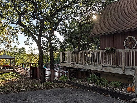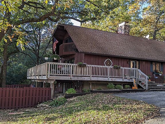 Idyllic country living on a heavily wooded five-acre lot surrounded by nearly 850 more acres of forest preserve near the Sugar River. Secluded yet accessible. Hononegah Community High School district (sender school Shirland School). With extended wraparound deck and gazebo off the pool patio, you can enjoy nature at its finest: hawks, turkeys, deer, humingbirds, etc. are common sights. Heated lazy-L, built-in 30ft by 16ft swimming pool and hot tub create the perfect party atmosphere for birthdays, summer holidays, anniversaries, and graduations. Two-year old new pool liner, pool heater, pump and filter. Brand new solar cover and heavy duty hot tub cover.