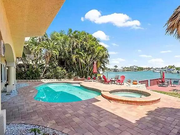 Waterfront Paradise!!! Come fish off your private dock or pull you traps for fresh stone crabs and blue crabs, then throw your fresh catch on the grill while you dine under the tiki hut with a firepit dining table. Lower your boat and jump on your jets skis right in your backyard. Freshly updated 4 bdrm with an office 3 full bath 2 car garage on direct deep water of Boca Ciega bay, with just a 5 min boat ride to the Gulf of Mexico, on highly desirable and sought after Paradise Island of Treasure Island Pool, tiki hut, dock, boat lift, floating jet ski dock, wet slip for large boat. 2 master suites with private bathrooms Entire upstairs is a 850 sq ft. beautiful master en-suite with 2 walk in closets, jetted corner tub with separate shower. Venetian shower panels, linen closet. Separate A/C and water heater. This could easily be made into a next Gen home. Living room, family room, 2 dining rooms, pavered patio, porch, driveway , and side entrance. New on demand water heater, upgraded electric panel, granite countertop new slide in range with wall mounted oven hood. New fans, paint, baseboards thru out! Updated bathrooms with bidet remote control toilet seats. A 2minute drive to treasure island beach. Convenient to shopping and restaurants. Beautiful neighborhood with no mandatory HOA fees. This is the house you’ve been looking for. Priced below recent appraisal market value for a quick sale. Will cooperate with realtors who bring a valid qualified buyer. 3% commission. Will not sign an exclusive listing agreement, must have a buyer!!
