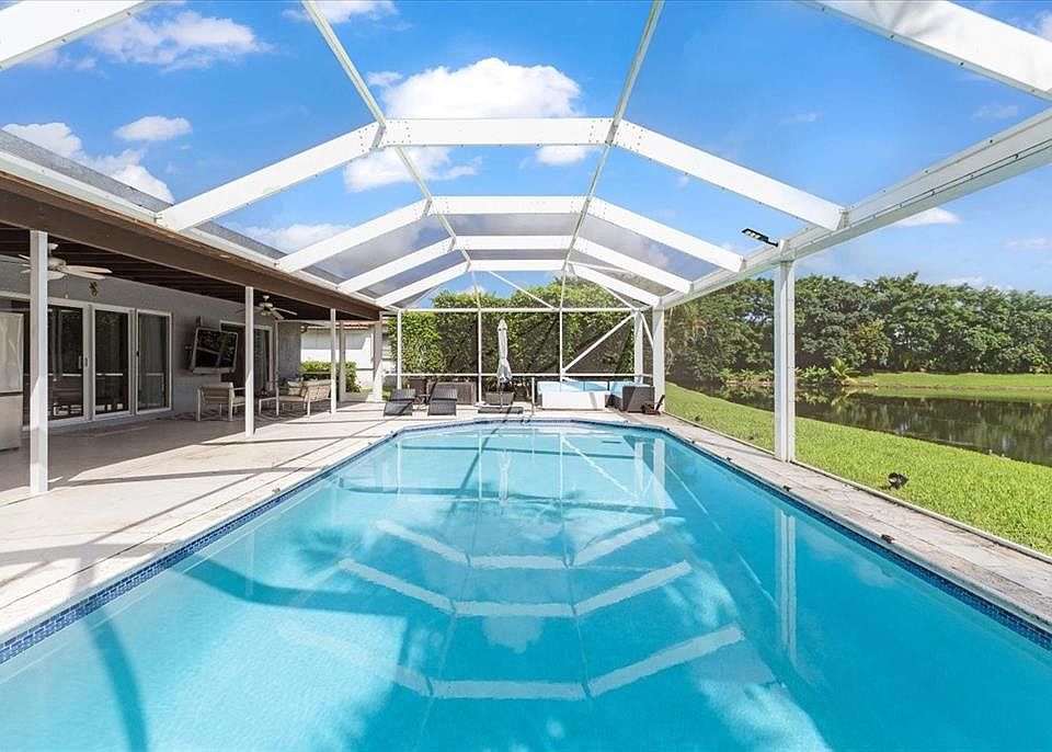 Modern elegance meets Boca living in this fully renovated 4BD/2BA lakefront pool home in gated Boca Greens. Bright open layout with soaring ceilings, chef’s kitchen with oversized island, and a flexible 4th bedroom with private entry—ideal for guests or in-laws. Upgrades include impact windows/doors, remodeled primary bath, newer A/C relocated to attic for quiet comfort, custom curtains, and newer water heater. Enjoy SW sunset views from the spacious lanai and pool with private greenery view. Low HOA, no mandatory golf. Minutes to Uptown Boca, top-rated schools, major highways, FAU, Lynn and places of worship. Furniture negotiable!