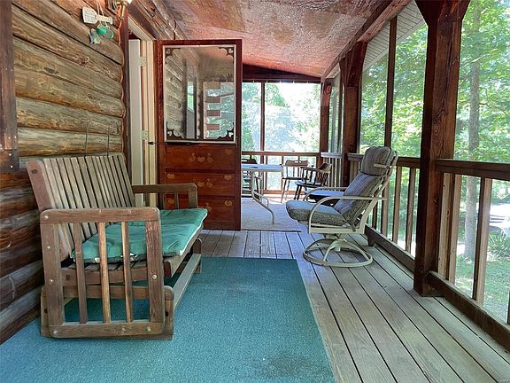 Welcome to Wing Lake within the private community of Holiday Shores, near Bismarck, MO where 10082 Oak Drive is located! This true log cabin has a screened in front porch, back deck, woodburning stove, gorgeous woodwork throughout the open great room, kitchen with an island, full bath, and large bedroom. It even has a new washer and dryer! Whether you choose to use this as your full-time residence or a weekend getaway it's ready for you to enjoy. Original Seller maintained this cabin beautifully. Holiday Shores is a private lake community that offers 6 lake access points, and each includes an outdoor BBQ grill and picnic table. This pristine lake, approximately 15-20 acres, is stocked - so go fishing! Some owners leave their boats near an access point for ease of use; trolling motors allowed; therefore, Wing Lake should remain serene. The Community Center is where your mail is delivered, & trash is deposited at the dumpsters. Your low HOA fees cover the road maintenance, trash, & lake.