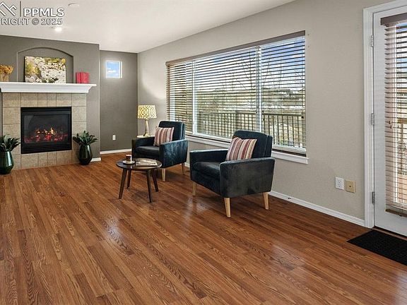 Prestigious Pine Creek home in Award-Winning D20 school district. This STUCCO, 3 car garage home is a rare find on a quiet street, with walkout basement, and jaw-dropping VIEWS of the front range! The inviting covered front porch offers a charming, shaded retreat overlooking the xeriscaped front yard. Step inside to soaring vaulted ceilings and an extra wide staircase with Juliet balcony that creates a bright, open, and spacious atmosphere. Updated kitchen features expansive granite counters, contemporary cabinets with pullouts, oversized pantry, Stainless Steel appliances, tile backsplash, & kitchen sink overlooking backyard with a view of Pikes Peak. Open floorplan to family room with cozy tile fireplace and wall of windows with panoramic mountain views. This level also features 1/2 bath, laundry/mudroom w/ overhead cabinets, formal dining & living space, and even a super cool extra finished space for a convenient secondary pantry/storage space, small office, or dog kennel.... You get to decide! Upstairs massive primary retreat is a perfect place to unwind and watch the sunset over the mountains. Attached bath includes dual vanities, soaking tub, and stand up shower. Oversized walk-in closet thoughtfully designed for organization. Three additional bedrooms (one with views) & a full bathroom complete this level. Then, get ready to DREAM with your large 1,036 sqft unfinished walkout basement, and additional attached 300 sqft storage space. SOO Many Possibilities! And, that’s not all! NEW carpet 2025, Class 4 Roof & partial Windows 2024, TOP OF THE LINE composite/metal deck 2023, Furnace, A/C & Water Heater 2012, STUCCO, fully fenced back yard with gorgeous stone pavers. Located in Golf Course community with wide walkways, pocket parks, green spaces, and low HOA. Perfectly situated near the Children’s Hospital, Lifetime Fitness, State of the Art John Venezia Park with pickleball courts and MORE, Shops at the Promenade, trendy restaurants, Air Force Academy & I-25.
