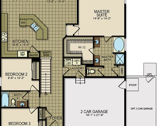 With 5 bedrooms and 3 baths, The Huntington offers ranch style living with 2962total square feet.. An open concept home, the Huntington features 3 bedrooms on the main level and an open great room with dining area. Full finished basement included! Standard 3rd car garage included at Paint Brush Hills. Try the Interactive Floor Plan Here!