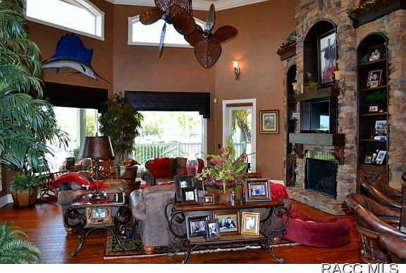 Gracious, light-filled 4 bedroom, office and 3.5 bath exclusive Riverfront estate offers every amenity necessary for entertaining a large family and guests. Paver drive & Marlin fountain set the tone for the exquisite interiors that boast custom craftsmanship and finishes throughout. An elegant foyer entry overlooks the formal dining & living area & a wall of French doors that opens to Pool and the River. Gourmet kitchen w/ granite surfaces and professional appliances, overlooks a spacious family room & breakfast nook. Master Suite w/ Exquisite Bath, FP, Movie Room, Boat House, 2 screened party areas, dock, boatlift, guest/party house, boat ramp & so much more