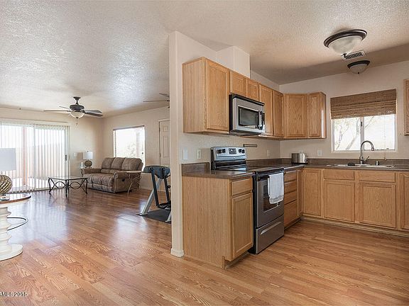 Charming Santa Fe Home located between Sierra Vista and Bisbee. This quaint home features a well maintained 2 bedroom, a remodeled bathroom, wood stove in the living room, stainless steel appliances, 2 pantry closets in the kitchen and great views of the mountains from the living room. The exterior features a wrap around covered patio (new metal roof), beautifully landscaped front and backyard, green house and new paint on the exterior wall. Attached 2 car garage, fenced in and on a paved road! Perfect retreat for those who are looking to be in a quiet neighborhood!