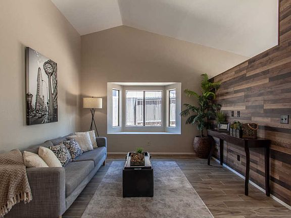 Wonderful remodeled Townhome in Reddington Hills! Move in ready 2 Bedroom 2 bath townhome with 1 car garage. High vaulted ceilings makes this floorplan feel larger than you would think, very functional spaces. Gorgeous wood look tile in all main living areas, newer architectural shingle roof, no poly pipes, newer HVAC 410A system, popcorn ceilings removed & retextured, fully repainted with custom 2 tone paint, all new kitchen with Quartz countertops, under-mount stainless steel sink, new stainless steel dishwasher, stove and microwave. New faucets, lighting, vanities, door hardware, fixtures, bath accessories, mirrors and more. Agent/Owner Spacious fully fenced in backyard and covered patio. Fabulous location and pride of ownership community with well kept pool & recreation area.