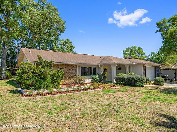 Very nice 3 bedroom, 2 bathroom, 2 car garage home- features: split plan, master bedroom with walk in closet, spacious 2nd & 3rd bedrooms, newer kitchen appliances, interior paint, HVAC 2022, front porch, gutters, curbing around beautiful mature landscape and lawn irrigation. Open backyard patio, perfect for entertaining family and friends. Great location, centrally located in the heart of Spring Hill, close to shopping, restaurants, medical facilities and just miles from the Suncoast Parkway for an easy commute to Tampa. Schedule an appointment to see this great home today!