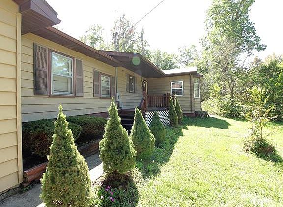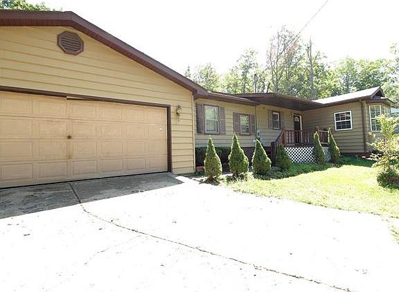 INVESTOR OR HANDYMAN? LAKE SETTING, nestled in the trees: 3 BEDROOM RANCH style home with walk-in bay in living room. Fireplace in master bedroom, huge country kitchen with open floor plan. Great 2 car ATTACHED GARAGE, 2 additional outbuildings, well and public sewer. Home needs some work - so much potential! NEW PRICE! Take a look!