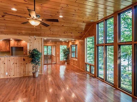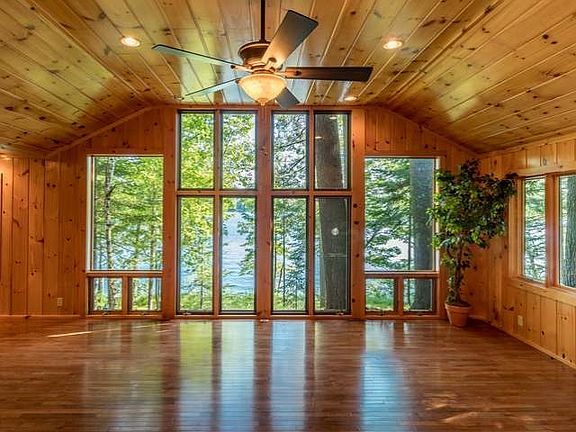 Come home to the quiet side of the northwoods! Beautifully reconstructed home just 41' from the sandy shore of Lower Kaubashine Lake. Thoughtfully designed renovations seamlessly transition to modern updates while retaining the charm of yesteryear. Oh the views! Southern views abound from floor-to-ceiling windows in great room, the 420 sq. ft. 3-season sunroom, & from the open sundeck. The interior offers the warmth of knotty pine walls & vaulted ceilings, oak floors & a stone gas fireplace. Lovely, updated kitchen has a pass-thru arch to the great room. The master suite boasts a stone gas fireplace, walk-in closet, large vanity w/sink, & a private deck. Main floor living is completed by 2nd bdrm, full bth, & laundry. Unfinished walkout LL leads to covered & open patios, terraced landscape & pier on the sandy shore. The original stone wall & pillars, & newly tuck-pointed sturdy stone/concrete foundation add to the distinctive appeal of this property.