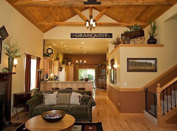 Amazing unique home! Feels like you're living in a mountain lodge with all the amenities & conveniences of the city to enjoy. Soaring vaulted wood ceiling & great room floor plan on the main leads to private fenced back yard w/fire pit & man cave (w/power). Upper master with vaults, TWO walk-in closets, & private balcony overlooking the park-like setting. Second master & 2 bedrooms on the main. Huge kitchen with new SS gas appliances. Blocks from paths along the river to Cook Park. W/D included.