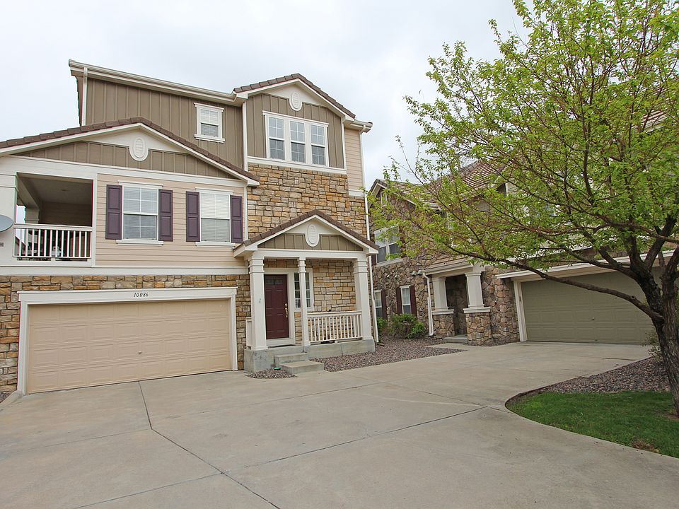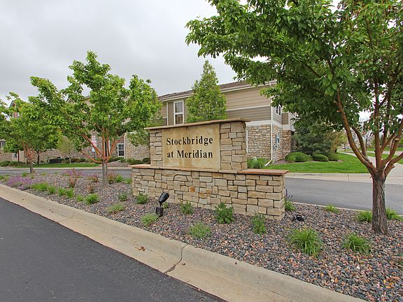 Sunny, move-in ready Meridian Stockbridge town home that lives like a single family home âEUR" no common walls! With 1,640 square feet on three levels, this newer (2004) home offers an abundance of space for the price. Ground level with garage access features a guest bedroom or office with a large closet. Step up to the open second level to find the kitchen and breakfast bar, living room, dining room, laundry and powder room. Numerous windows bring in a plethora of natural light. An additional bedroom, a full bath and the master suite comprise the third level. The spacious, light and bright master enjoys a private full bath with double sinks. Two car attached garage. Tucked away in a unique, desirable community with convenient access to I-25, Lincoln Avenue and Park Meadows. HOA dues are just $105 per month. Affordable, low maintenance living at its best!