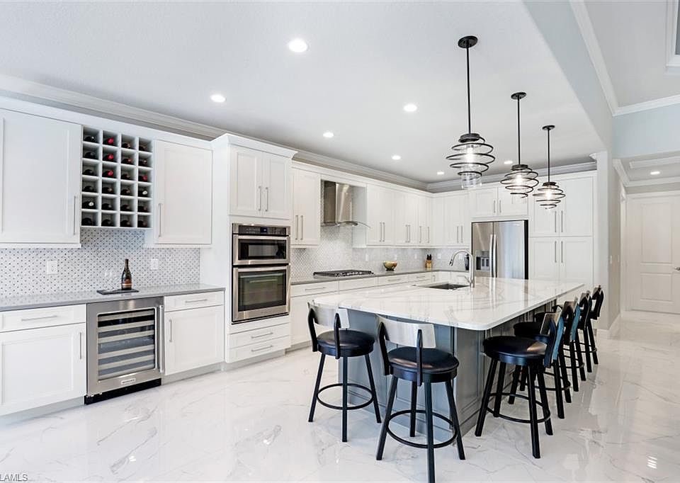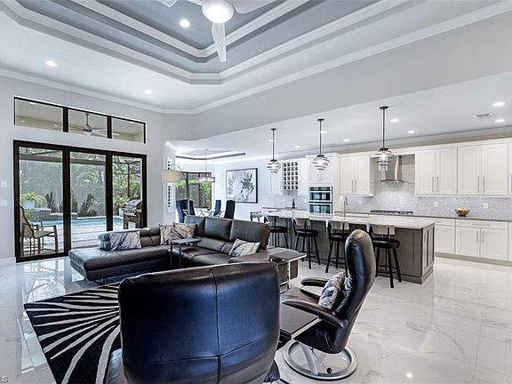 This immaculate Toll Brothers built home is situated in the quaint gated community of Palazzo of Naples - a private enclave of just 85 homes. Built in 2018, this open great room style floorplan home offers 3+Den, 2.5 Baths, oversized two car garage (30'/25'x19') and features a long list of special features and upgrades: HURRICANE IMPACT WINDOWS & DOORS; WHOLE HOUSE GENERATOR & surge protector; GAS heated salt water pool, sunshelfwith bubbler & raisedwaterfall wall with stone accents; picture window screen cage; marble look tile flooring throughout the common areas and baths; heavily upgraded kitchen including the highest levels of materials including quartz countertops, tile backsplash, luxury cabinetry with soft close, extended dry bar, GAS cooktop with range hood, wall oven, and large single basin sink; special order lights & fans; glass front doors; wood floors and wall built-in in the den; plush carpeting in the bedrooms; widened driveway with upgraded pavers; flat tile roof; tankless gas water heater; and more! LOW HOA Fees of just $1,068/Quarter including lawn care. Just 2 min from I75, 15 min to the Beach, 20 min to RSW, 12 min to Mercato, 20 min to Downtown/Olde Naples.