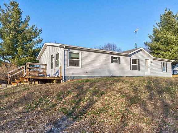 Attractive manufactured home sitting on just shy of 5 acres in rural East Warrick County with quick access to I-64! Enjoy the tranquility of the rolling landscape from your side deck. This home features open concept living, dining, and kitchen spaces with nice laminate and tile flooring. There are lots of kitchen cabinets for storage. The split bedroom floorplan is an added bonus with the master being just off of the living area and generous in size. The master bathroom has a garden tub and separate shower. The two secondary bedrooms and a full bath are on the other side of the home. Travel downstairs to the amazing unfinished basement and imagine the possibilities for entertaining space or additional bedrooms. There are double doors that lead out back with an added outlet for a hot tub. This property also features a newer 16x12 shed and a 12x8 metal storage shed for mowers. Come take a look and make it yours! Seller selling home as-is.