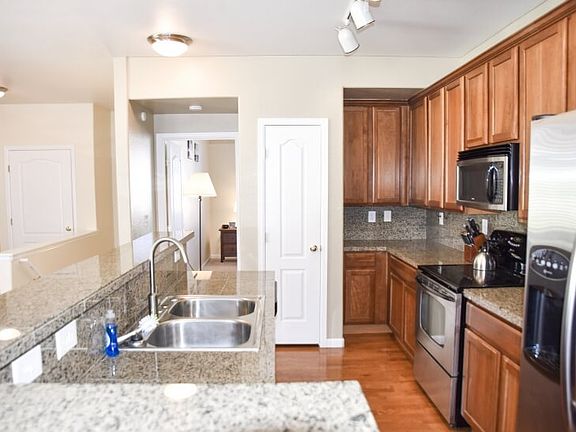 Reference CHBO ID: 22097 This FURNISHED rental is managed by the CHBO Rental Program - Corporate Housing by Owner, Inc. Check our website for furnished rentals throughout the United States. The minimum stay required is 1 Month. SUMMARY: Fully furnished home in Arvada, CO. This is a two-bedroom condo in the heart of Jefferson County (Gateway to the Rockies). The entry to the condo is from the ground level next to garage which takes you up the stairs to the dwelling on the 2nd floor. The master bedroom has an en-suite bathroom and private patio. The second bedroom has a full bath in the hallway. The living room is open to the kitchen and dining area. The second patio has a BBQ grill and a view of open space. The condo includes an attached single car garage and driveway for parking. The condo includes access to community pool (seasonal) and playground. Pet's are welcome! LOCATION: This uniquely located condo has easy access to Hwy 70 and is 0.25 mile from RTD Arvada Ridge Station which is one stop from Olde Town Arvada and 30 min from downtown Denver Union Station. Boulder and Downtown Denver are only 30-minute drives away. Downtown Golden 15-minute drive away. The Rocky Mountains are 1.5 hrs. away with easy access from I-70. Grocery stores are a short 5 min drive. LOCAL ATTRACTIONS: Red Rock's Amphitheater is only 30 minutes away. One stop on the RTD rail and you are in Olde Town Arvada with numerous restaurants, breweries, shops, night life. Downtown Golden, home of Coors's brewery, is the second exit on 70. In addition to Coors's brewery, downtown Golden offers 4 craft breweries along with small town country atmosphere and restaurants. Golfer's, hikers, Bicyclists, and skiers will love this location. Golfer can enjoy rounds at Fossil Trace, Indian Tree, and West Woods. Hikers are close to Golden Canyon State Park along with endless other hiking trails. Bicyclist the Ralston Creek Train is right your door. This trail is Arvada's longest and most complete public trail follows the meandering creek, linking several City parks and open space areas. World class ski resorts are just 1.5 hrs. away. Monthly rent includes all utilities, cable, internet and HOA. Tenant only pays utilities (electrical/gas) if they exceed $200 per month. Deposit of $1,200 (refundable) Pet Fee of $100 per pet (non-refundable) Cleaning Fee of $200 (non-refundable)