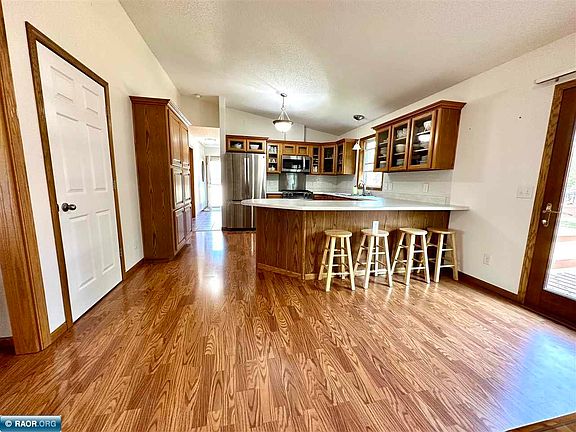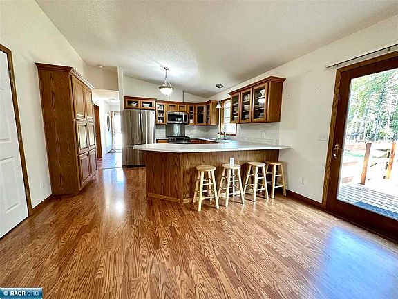MOTIVATED SELLER! This property has it all - secluded, beautiful view, huge yard to enjoy. This well maintained home on 8+ acres features an open concept kitchen/dining room & living room. The master BR w/walk in closet, jacuzzi tub and shower stall on the main level. There are 2 additional BR w/large closets, & laundry also on the main level. Recent updates include screen doors, storm doors, interior white doors, shutters, deck railings, and both bathrooms. The 2 stall insulated/heated detached garage w/ ample attic storage. The unfinished basement has endless possibilities including egress window for a 4th BR & a roughed in bathroom. Front deck and an additional large back yard deck to enjoy the abundant wildlife. Snowmobile & ATV trails near by. Dark River (DNR trout river) runs through the property, many lakes near by. Over 80 acres of Superior National Forest is behind the parcel. Compliant septic. If you are looking for a peaceful place to enjoy this is a must see.