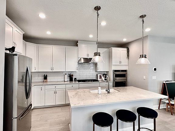 This modern and comfortable home offers a peaceful pond view and a quiet green backyard. The main floor features a spacious, modern kitchen, a large primary bedroom with a glass-enclosed shower, a second bedroom, and easy to-maintain vinyl plank flooring. Upstairs includes a bright loft, third bedroom, and full bathroom perfect for guests or a home office. Lawn care is included, and the alarm system is ready for activation.