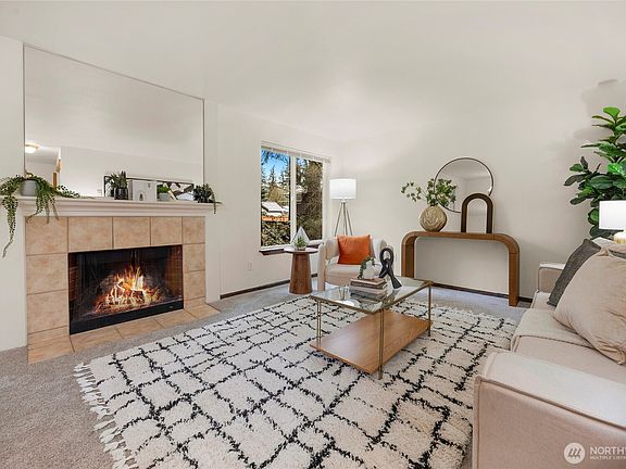 Welcome to your Spacious 3-bedroom & 2 Full-baths end unit w/open main living area floor plan. Enjoy New flooring, interior paint, & bathroom lighting. Great room concept w/kitchen opening to the dining & living room. Cozy Fireplace. Western exposure to good natural light. Large primary bedroom with double closets & Full bath. 2 additional bedrooms & 2nd Full bath. View Deck with extra storage. Sports Court & Playground. New Roof. Dues include W/S/G. Individual 1- car Garage and 1-Carport parking. Excellent location in the back western corner of the community (private & quieter). Minutes to Sound Transit Station-bus routes to Everett/Bellevue/Sea. Quick access to I-5, Silver Lake, Boeing, and Interurban trail. No rental cap. Cats & Dogs OK