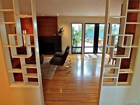 This mid-century modern, custom detailed, single family beach home has it all. This home has been meticulously upgraded throughout. Offering French limestone flooring throughout the kitchen and bathrooms. Gourmet kitchen has stainless steel designer appliances, counter tops and an amazing built-in kitchen table with your choice of wood or glass top. The living room is set off with a teak and glass tile fireplace. The dining and living rooms have recessed lighting and lots of natural light. French doors open to a spacious rear yard with an outdoor fireplace and private spa. A private master suite with a temperature controlled fireplace, luxurious master bathroom and custom walk-in closet. The guest bedroom/office has a private bathroom with a Murphy bed built-in. The backyard is like the rest of the home and thoughtfully laid out with lush landscaping and private seating areas. There is an electric gate for private parking for an extra car, boat or RV. Directions: Main and 13th Street home is south of Main on the left side.