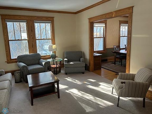 Magnificent two-story home in the heart of historic South Fargo! The main floor invites you into a large, cozy living room that flows seamlessly into a stunning formal dining room. The updated kitchen is complemented by a convenient half bath and a dedicated computer room. Bask in the charm of the main floor's oak woodwork and beautifully preserved original hardwood floors.