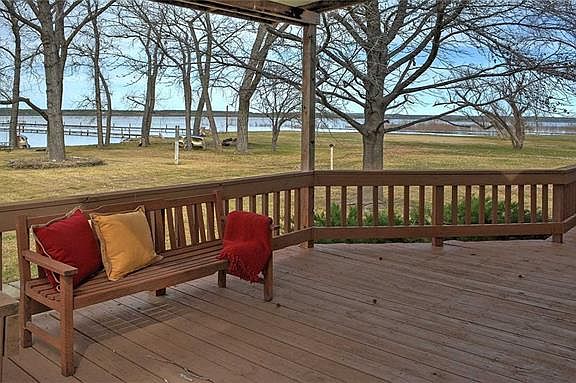 Unique lake front property! This multi-level home is neat as a pen. Living Kitchen design on main lever with covered lakeside patio. Lakeside Balcony off the master for enjoying the spectacular sunsets this property has to offer. Pristine manicured and over sized play yard dappled in shade trees. Concrete drive with ample space for RV or boat parking. Spacious Two car garage. Like new boat dock with slip with encapsulated foam. Enjoy it now!