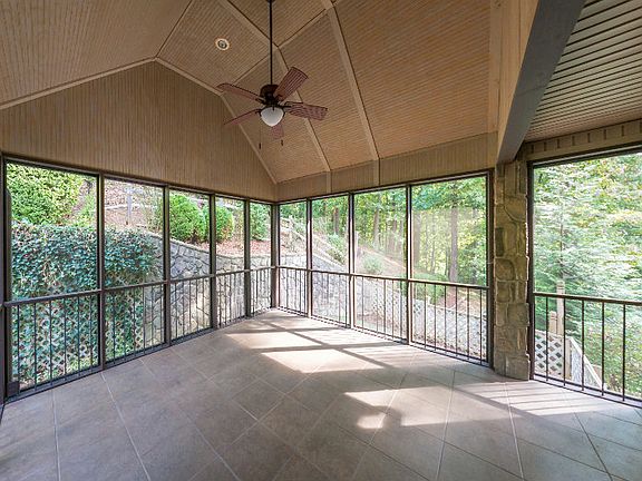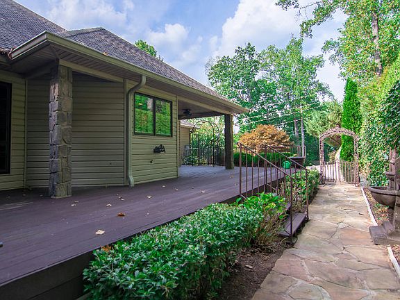 This 4700 square foot home is well underpriced and ready for new owner. House features include a huge custom kitchen with granite countertop, island, and walk-in pantry. Kitchen window overlooks a beautiful English garden with putting green. The vaulted living room has exposed beams and a double fireplace. Living room door leads out to screened in porch. There is a home office/library on main level with large windows to view mountains and lake. The main level laundry room is near master bedroom which has fireplace, trey ceiling, and oversized walk in closet. Finished terrace level has a media room with surround sound throughout house and 3 car garage. There are two driveways for easy access.