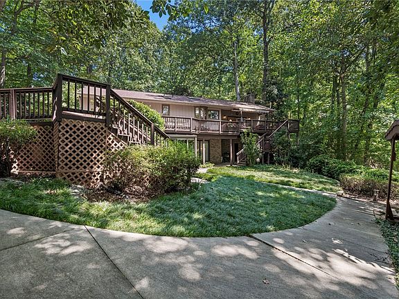 Just minutes off I-85 at Exit 14, this waterfront home is in one of Lake Hartwell's most sought after locations. Not only is it incredibly convenient to Clemson, Greenville, and Atlanta, but there's no HOA! Most importantly, you will NEVER have to worry about the water depth here. A concrete path leads to the lake, where you'll find a newer covered dock with a deluxe ladder and swim bench. Situated on an extensively landscaped and private 0.71 acre lot, this well maintained home is brimming with character that is apparent before you even enter the home. Once inside the home, to the left you will see a huge combination living/dining space with vaulted ceilings and a masonry wood burning fireplace. The kitchen is straight ahead and includes details such as custom cabinetry with pantry pull-outs, storage for wine bottles & glasses, a desk area, remote-controlled skylight and large windows facing the lake. Just off the kitchen is the walk-in laundry room, which has additional storage space and a utility sink. The main level primary bedroom features corner built-ins, multiple closets, and a private bathroom with a walk-in tile shower. A second bedroom and full bathroom are also located on the main level. The lower level has a large living/recreation space, a second full kitchen, as well as a sunroom/all-season room with views of the lake. The third bedroom is located on this level, in addition to a third full bathroom which has both a garden tub and shower. Other features include a circular driveway, large storage room/workshop attached to the carport, unfinished storage/workshop area in the basement, irrigation system, central vacuum, retractable awning, built-in planters, solid wood interior doors, Pella casement windows, and tons of storage space. The home has hardwood floors through the foyer, hallway, kitchen, and both main level bedrooms.