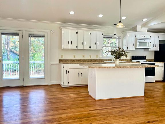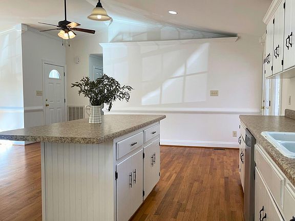 Bright and inviting, this move-in ready home boasts an open-concept kitchen and living area with soaring vaulted ceilings - tons of natural light! Exit right from the kitchen onto the deck perfect for enjoying quiet mornings or entertaining friends and family. Hardwood floors flow seamlessly through the living room, kitchen, and all three bedrooms, adding warmth and style. With 3 spacious bedrooms and 3 full bathrooms, there's plenty of room for everyone! Book a showing to see this cozy home for yourself. Home being sold as-is. This home is rent ready and was previously rented at $2,250/mo by NC State students!