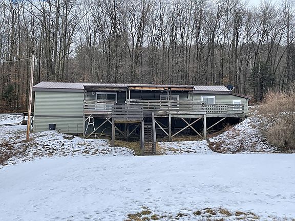 Nestled on 10 acres picturesque land, this well-maintained 3-bedroom, 1 full bath home offers the perfect escape or investment opportunity. Whether you're looking for a peaceful hunting cabin, a charming Airbnb, or a full-time residence, this property is ideal for a variety of lifestyles. The home features beautiful hardwood floors throughout and an open-concept dining and kitchen area, perfect for entertaining. Step outside onto the spacious deck and enjoy breathtaking views of the large, stocked pond, a true centerpiece of the property. The natural surroundings provide a tranquil setting for relaxation or outdoor activities, while the proximity to nature makes it an excellent choice for hunting enthusiasts. A large garage offers ample space for all your outdoor toys, equipment, and storage needs, making it a practical addition to this already incredible property. This home truly offers endless possibilities, don't miss the chance to make it yours!