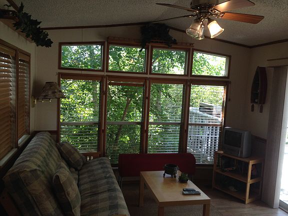 Beautifully remodeled with Pergo wood floors and custom wood blinds throughout. Oversized open deck and screened in porch. Large Shed for storage MONTHLY LOT RENT IS $570