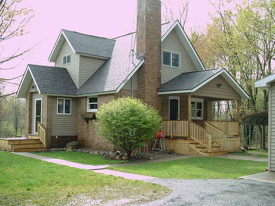 Move in ready brick home surrounded by 15 wooded acres. Home includes 3 bedrooms, 2 bathrooms, kitchen, dining room, living room, with an open floor concept, partially finished walkout basement, central air, 2 car garage, 16x25 barn, out building, and outdoor wood stove. New windows were installed in 2009. New hardwood flooring, remodeled bathrooms, new appliances, covered front porch, water pump and tank in 2011. All exterior roofs were replaced in 2015. Great location 1 mile from Peach Lake public access, with high school and elementary/middle schools nearby. This is a must see home on a quiet setting, perfect for a family and/or outdoor enthusiasts