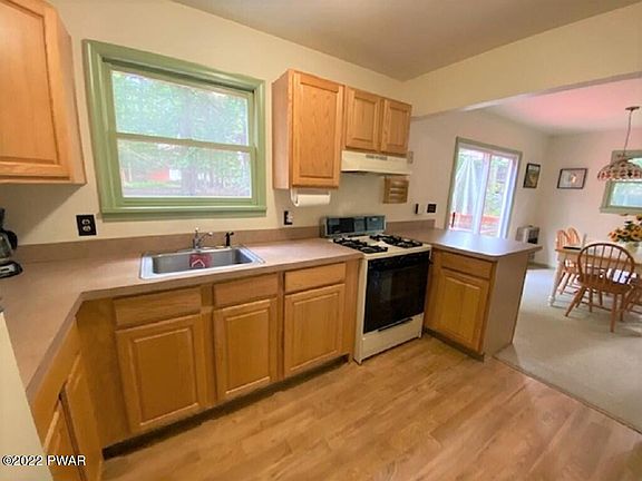 Enjoy this mountain-lake home with a detached 2 car garage at the end of a quiet cud-de-sac with views of wooded back yard while at the same time, accessing the top-rated amenities of Wallenpaupack Lake Estates.This home boasts 4 bedrooms with an additional bonus room that can be used as an office, sitting/TV room, or extra sleeping area. Three of the bedrooms have direct access to a bathroom (''Jack & Jill'' bathroom style).The dining area is large enough to accommodate a table that seats 8 plus a breakfast bar seating for 2 people.The finished basement with a wood stove is used as a family room/ game room with plenty of natural light and walk-out access to the yard. There is a detached 2 car garage and flat driveway for extra parking. The golf cart and small boat are included in, Beds Description: 2+BED 2nd, Beds Description: 1BedLL, Beds Description: 1Bed1st, Baths: 1 Bath Level 1, Baths: 1 Bath Level 2, Eating Area: Dining Area, Sewer: WS Comm Central