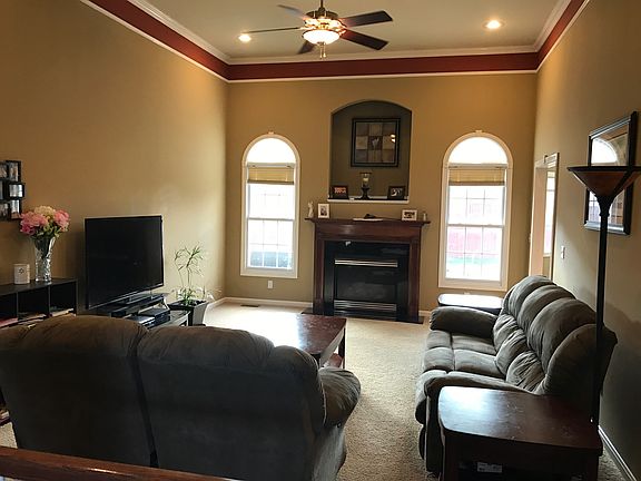 REALTORS welcome. Will pay 2.5% at closing!! Ready to Sell! Call 502-643-6258 to schedule a showing. Ready to show most anytime! One look and you will want to call this gorgeous place home. Built on a quiet cul de sac in great neighborhood. Large covered porch. Nice split bedroom layout. 12' ceilings in the living room, dining room and foyer. Living room has a gas fireplace. Lots of cabinets and counter space in the kitchen. Nice size master bedroom with double tray ceiling. Large master bath with double sink vanity with make-up area and corner whirlpool tub. Large open basement. Full bar with large sink and space for a full refrigerator. Space for wall mount tv. Pre wired surround sound. Great for entertaining. Large unfinished area in the basement with already built shelving for storage.