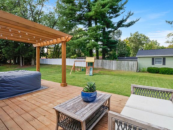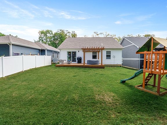 Gorgeous 3 year young, open concept ranch close to Valpo's thriving downtown district, creates a rare opportunity to be close to everything in a newer home. A charming covered porch welcomes you to the property as you step into the bright open floor living space with cathedral ceilings. The living room flows to the dining area and kitchen with high quality soft close cabinets in a soft two tone color theme, quartz counters, stainless appliances and subway tile backsplash. Sliders off the kitchen lead to a nice sized deck with a lovely pergola leading to the backyard with included playset. There are 3 bedrooms on the main level including the primary bedroom with large walk-in closet and private bathroom with dual vanities and walk-in shower. Bedrooms 2 and 3 are conveniently located near the full bathroom. A main floor laundry room adds to the convenience of single floor living. The partially finished basement features high ceilings which have been blacked out for a mod future finish, acid stained concrete flooring plus rough-ins for a 3rd bathroom. Lovingly cared for, this home shows like new - just add furniture and start enjoying this beautiful space close to downtown.