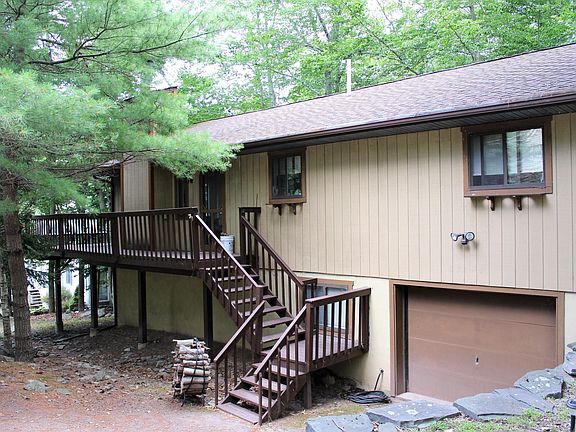 Well maintained raised ranch located in Wallenpaupack Lake Estates! Features include spacious Living Room with wood burning fireplace, cathedral ceilings, open floor plan, sliders to the deck, master bedroom with full bathroom, second bedroom and main bathroom with shower...finished lower level offers large family room with pool table, slider to patio, additional bedroom and bathroom, laundry room, 1-car garage...home sits on a corner lot and includes the adjoining lot for privacy. Community amenities include 2 outdoor pools, an indoor pool, fitness center, 2 non-motor boating lakes with beaches, golf carting, community sewer & water, lake rights to Lake Wallenpaupack and much more! Located within the Wallenpaupack Area School District.