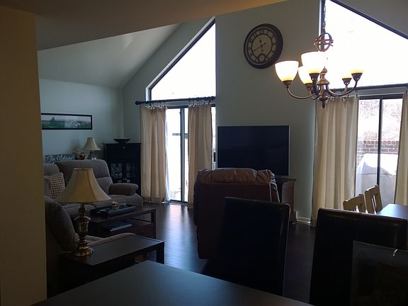 One level living! This spacious, bright end-unit condo is located convenient to highway and shopping. Dramatic cathedral ceiling in living and dining area. Kitchen and Bathrooms have been beautifully renovated with a sleek, contemporary look. Master suite has walk-in closet. All appliances including washer / dryer. Two patios for outdoor enjoyment. Fitness center too! Move right in! Owner pays for trash pick-up, water, and sewage. Tenant pays for electricity. Access to activity center. No pets. No smoking inside the unit.