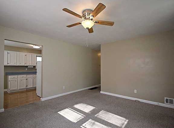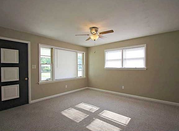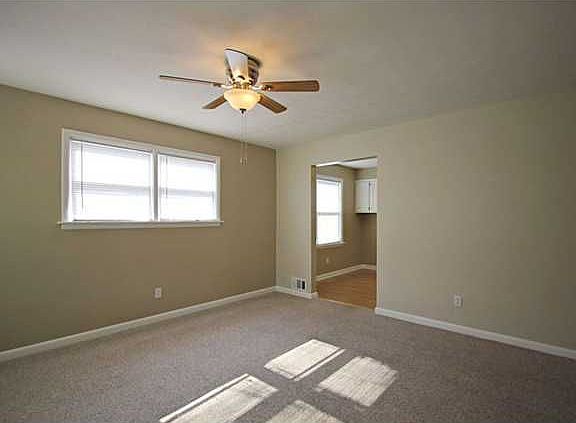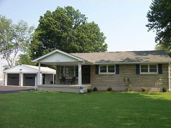 Country Living and Room to Move. This home welcomes you with an oversized Yard as you pull up the Double Driveway to a Peaceful Bedford Stone home. As you walk up to the Large Front Porch (12x14) you will then begin to realize how nice the evenings will be to just sit and relax. You will then enter the home to the Big Living Room with Berber Carpet, Large Picture Window, Fan, and Fresh Paint which continues throughout the home. As you continue down the hallway you will come upon a Large Full Bathroom with Tile Walls, Tile Tub/Shower, a High Toilet, oversized Oak Vanity and recent flooring. The Bedrooms are good sizes as well with recent carpet and full size closets. If you are wanting Ample Cabinets in your Eat-in Kitchen, then you will be delighted. This Kitchen offers nice White Cabinets, Vinyl Flooring which looks like Hardwood, Refrigerator and Range. The Utility Room is off the Kitchen and offers a Washer and Dryer and Cabinets. The Double Driveway was recently Black Topped and the Garage Door Painted. There is also a Garage Furnace, work Bench area and 220 in the Garage. The other two sheds have electricity as well. A new Roof was put on recently and some new windows as well. There are also Hardwood Floors under the Carpet, but unsure as to the conditions. This home offers so much