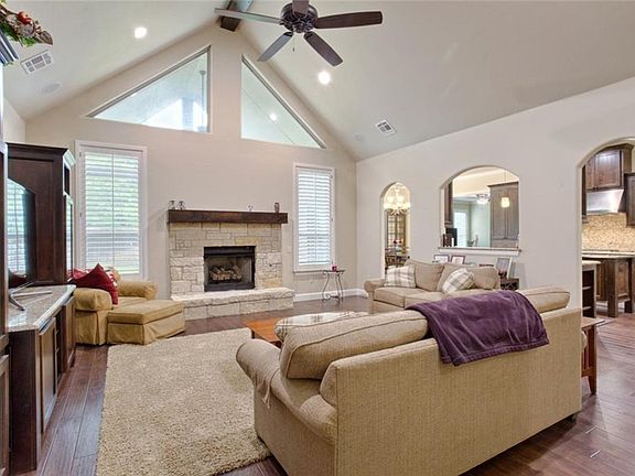 Immaculately maintained home in the highly sought after Arbor Lake addition, beautifully crafted by Brookfield Custom Homes, featuring 3 bedrooms, study, 2 living, 2.5 baths, with PLENTY OF SPACE! The living room has a cathedral ceiling, beautiful hickory scraped flooring, rock fire place, remote controlled ceiling fan, and plenty of windows for natural lighting. The kitchen is equipped with stainless steel appliances, gorgeous stained cabinetry, granite counter tops, and plenty of room for anyone who enjoys spending lots of time in the kitchen! Carpeted bedrooms, tile in baths and laundry room. This home has it all including high efficiency lights throughout, an air humidifier in the attic, fans in all of the rooms, sprinkler irrigation system with rain sensors, 24 hour monitored security, garage doors are connected to Wifi so you can use your cell phone to control, beautiful landscaping, large covered patio w/ a built in cabinet ready for a television! This one won't last long!