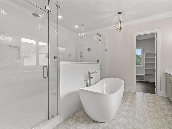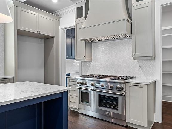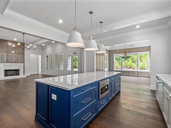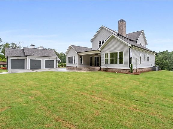 Situated on over an acre of beautifully landscaped grounds in the Estate section of Crossroads, this entertainer focused custom-built home perfectly balances elegance with modern comfort. Featuring a port cochere and detached three-car garage, it combines style, convenience, and functionality. Designed for those who love to host, this home’s open flow and thoughtful details make every gathering effortless. Step into the foyer adorned with stained pecky cypress trim and immediately notice the generous office with detailed wall finishes. The oversized family room, anchored by pecky cypress accents and a cast concrete fireplace surround, opens through French doors to an expansive brick patio, seamlessly connecting indoor living to a backyard perfect for a dream pool or outdoor entertainment space. The chef’s kitchen is ideal for entertaining, featuring an oversized island with a microwave drawer, dedicated storage for pots and pans, a farmhouse sink, and two dishwashers. The professional-grade 48" Thermador gas range with six high-output burners, griddle, and double ovens serves as the centerpiece, framed by blue and light gray cabinetry reaching 10’ ceilings and a custom Subzero refrigerator enclosure. The main-level primary suite provides direct access to the covered porch, a custom-built closet, and a spa-like bath. A guest bedroom on the main floor ensures comfort and privacy for visitors. Upstairs, a spacious bonus room or spacious 5th bedroom, two bedrooms with en-suite baths, and an open loft offer flexible space for family, entertaining, or a home office. Blending sophisticated design with seamless functionality, this home delivers an unmatched Milton lifestyle and a floor plan made for hosting with ease and elegance.