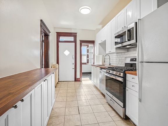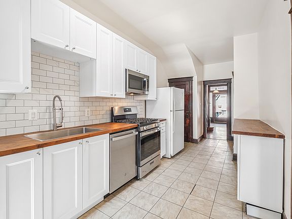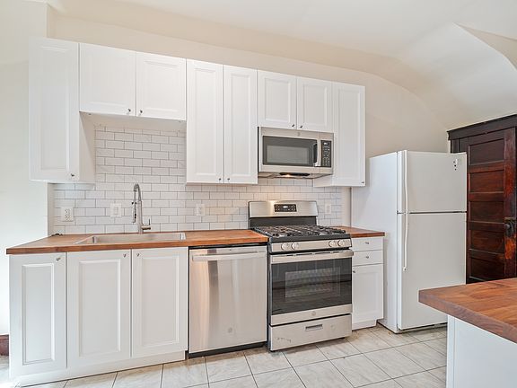 What a location! Charming raised front porch Federal-style rowhome with 4 bedrooms and 2 bathrooms. Nearly 1,700 square feet filled with original details, including natural mill work and pocket doors. The first floor has excellent living and dining space, original hardwood floors and tall ceilings. The brand new kitchen has a gas range, dishwasher, refrigerator and a sizable pantry. Upstairs, there are four bedrooms with hardwood floors and good closet space. The full bathroom is accessible from the hallway. The large basement has street-level access, making it perfect for bikers. The basement has another full bathroom, laundry and plentiful storage. A small, fenced yard accessible from a walk-through alley is perfect for your outdoor relaxation. Central, radiator heat and window air conditioning. Pets allowed with a non-refundable $200/pet deposit. Room Dimensions: Living Room: 12'1" (w) x 14' (l); Parlor Room: 12'1" (w) x 9'1" (l); Dining Room: 10'6" (w) x 15'6" (l); Front of house, small bedroom: 8'1" (w) x 12'2" (l); Front of house, large bedroom: 10'5" (w) x 17'1" (l); Back of house, small bedroom: 8' (w) x 9'11" 9 (l); Back of house, large bedroom, with private balcony: 10'8" (w) x 15' (l) Renter responsible for gas, electric and water. Pets considered on a case-by-case basis. $200/pet non-refundable deposit required. EHO.