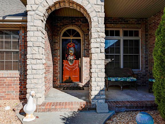 A remarkable single-level, all-brick home that was custom built and has had some great updates! Beautiful kitchen with granite counters and 2-year old black SS appliances, pull-out drawers inside lower cabinets, bar stool counter, dining area, and hearth room with beautiful gas fireplace. Wood floors throughout all living areas and kitchen. Huge master ensuite with walk-in closet, updated dual vanities, walk-in shower and jet tub. Second living area and formal dining room provides space for those family gatherings or entertaining events. Don't miss the WORKSHOP space and STORM SHELTER in the garage. Tons of storage - huge closets! Step out on the covered patio and peek over the the neighborhood lake and walking trails. Fabulous neighborhood and location in the heart of Nixa!
