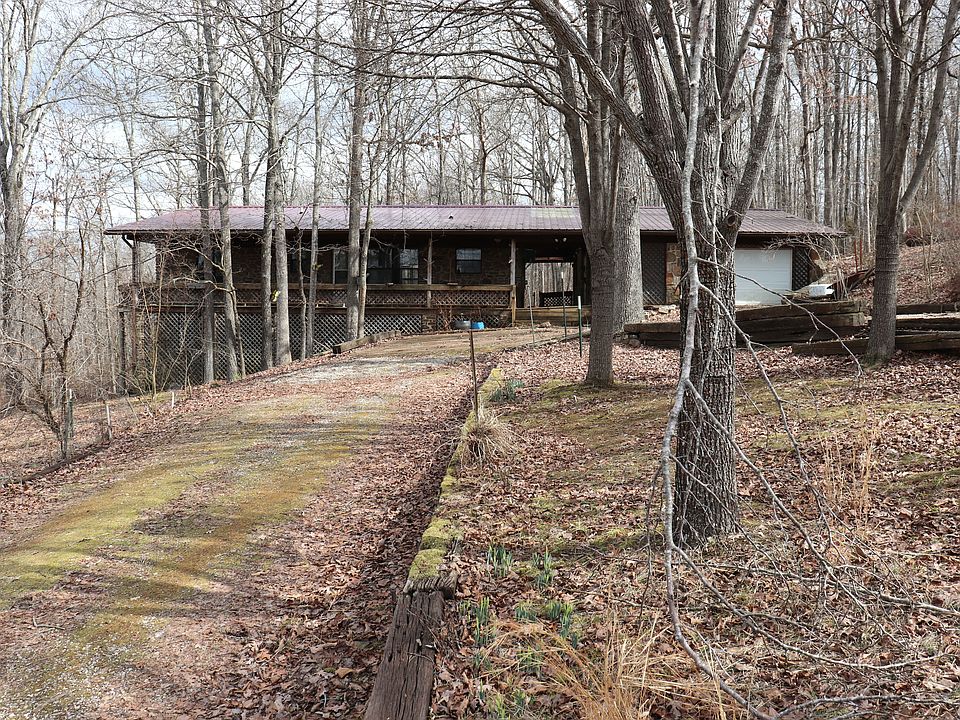 Nice rock home with some great views setting on three parcels of land equaling 13.31+/- acres. All rooms have many plug-ins, on the main level the living room, kitchen, dining room, 2 bedrooms and two baths. Both bathrooms are equipped with safety handrails. One bathroom has low step in shower with seat. Downstairs two more rooms, could be bedrooms, game room or office. Lots of possibilities. Could even ad a bath downstairs. Outside entry to lower level as well. Nice walk around porch, walk thru between garage and house has clear roof panels above so you have natural light. Large one car garage with plenty of room. The next room is a storage room, for garage, or canning, etc. Then you have what we once called a canning kitchen also has the washer/dryer connections and what appears to be a fire pit. Let us show you this home, put in your own updates and make it your own.