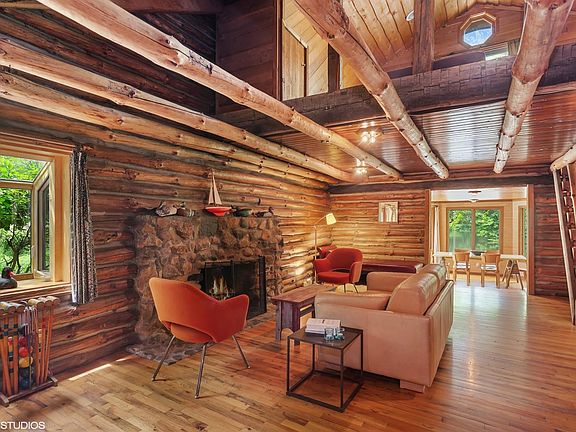 Quaint cabin overlooking serene spring fed pond on 20+ acres. 1 bd/1 bath vintage log cabin set among the rolling wooded landscape is truly the getaway place of which dreams are made. Beautiful gardens , brand new dock, storage barn and more. Take a stroll through the woods over the charming wooden bridge covered brook. Pond is fully stocked and ready for fishing, swimming or a lazy day on the boat.